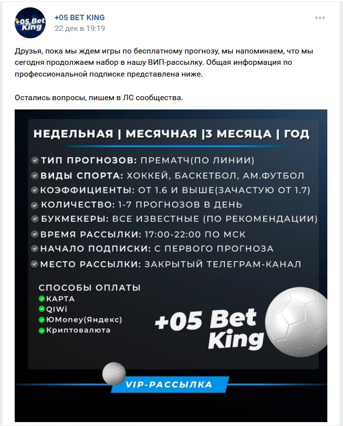 Проект +05 Bet King работает с 2017 года и предоставляет прогнозы на спортивные события. В данном обзоре рассмотрим основные аспекты его деятельности, включая услуги, статистику и пользовательские отзывы.