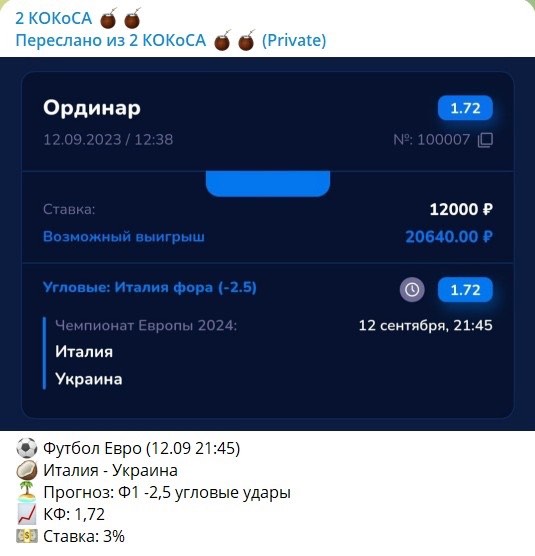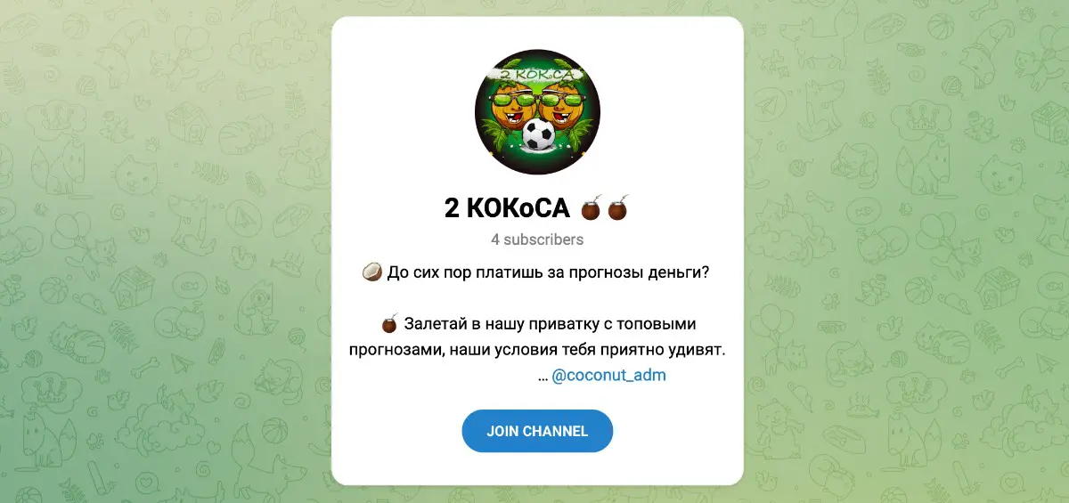 В мире ставок на спорт редко встретишь верифицированную статистику, но иногда находятся настоящие профессионалы, которые работают прозрачно. Администрация нашего ресурса в течение полугода изучала канал «2 КОКоСА (Private)» и включила его в белый список.