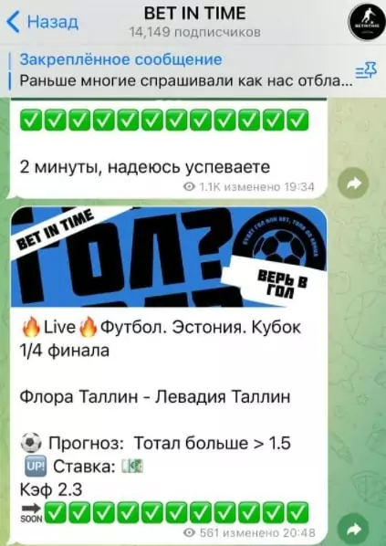 BET IN TIME – это Telegram-канал, который с 2017 года специализируется на спортивной аналитике для ставок. В данной статье мы рассмотрим его деятельность и определим, стоит ли доверять этому проекту.