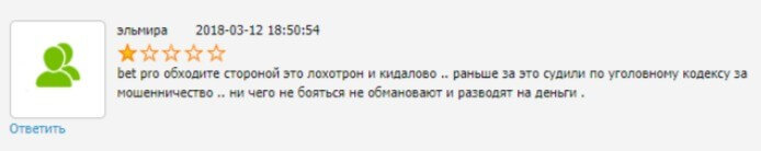 Анализ отзывов на независимых тематических ресурсах показывает, что репутация BET Pro, как и у связанных с ним проектов, крайне негативная.