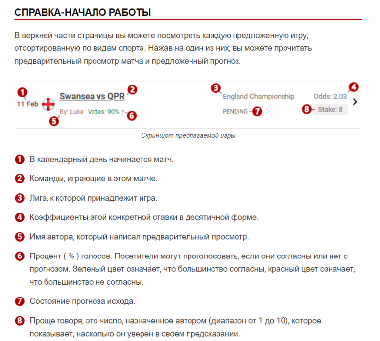 Главная задача проекта – поддерживать профессиональных беттеров и любителей ставок. В основном, прогнозы касаются футбольных матчей различных лиг, однако также предоставляются рекомендации и по другим видам спорта, таким как НБА, МЛБ, НФЛ и НХЛ. Пользователи сайта смогут ознакомиться со списком рекомендованных букмекерских контор.