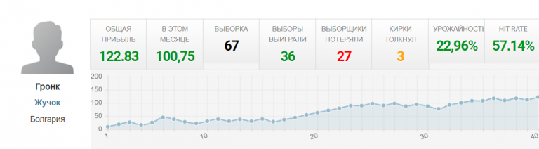 В статистических данных доступны все важные показатели для старта деятельности: прибыль на дистанции, общее количество ставок, а также количество выигрышных, проигрышных и рассчитанных с учетом возврата. Вероятность того, что озвученные данные являются достоверными, высока.