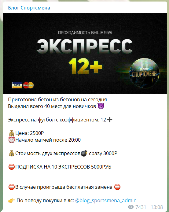 Сфера ставок на спорт изобилует мошенниками, которые используют самые разнообразные схемы обмана: от «раскрутки счетов» до поддельной статистики и ложных обещаний высокой проходимости. Наша команда изучила деятельность популярного Telegram-канала «Блог спортсмена», которым управляет Авет Агабекян (@blog_sportsmena_admin).