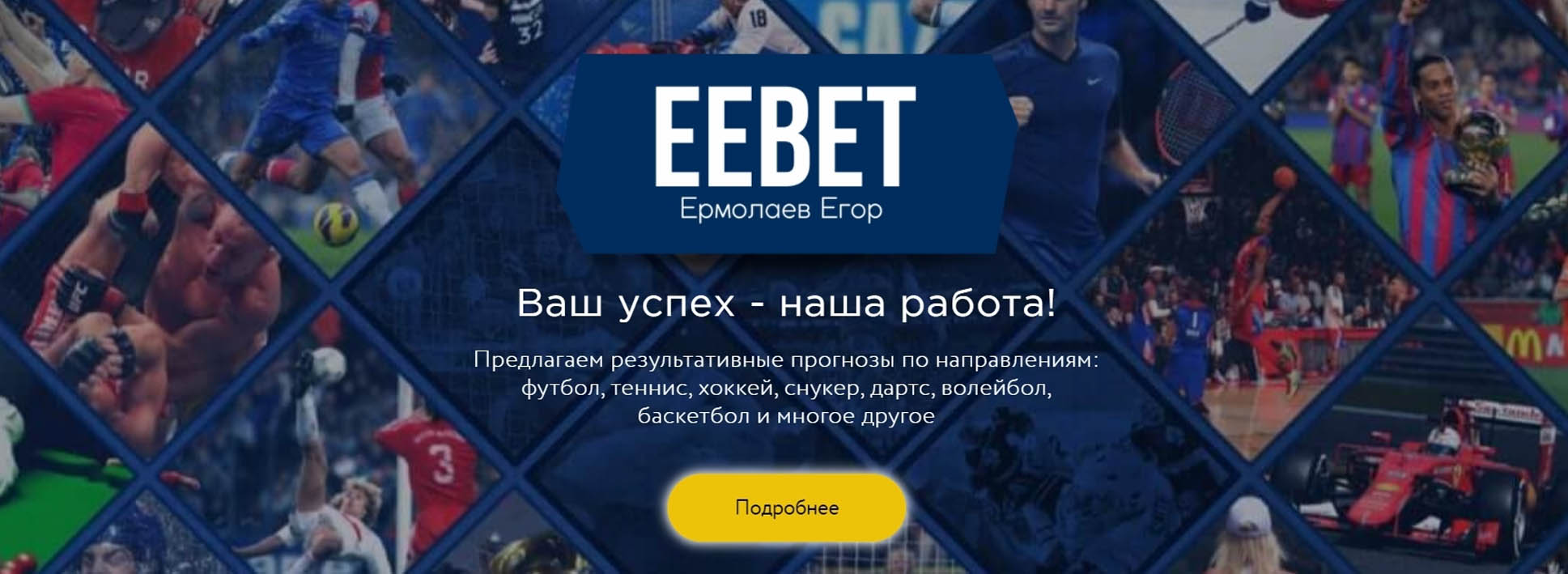 На сайте eebet.ru Егор Ермолаев предлагает услуги доверительного управления средствами. Раскрутка депозита осуществляется на счете клиента на следующих условиях: