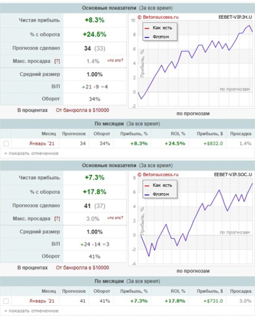 На странице ВКонтакте и в Telegram-канале проекта публикуются отчеты, однако это лишь скриншоты без ссылок на исходные данные прогнозов. Например, заявленная месячная прибыль составляет 7–8%. При этом возникает закономерный вопрос: как аналитики способны обеспечивать прирост депозита на 20–40% за 5 дней, если за месяц удается достичь лишь 8%? Без верифицированной статистики доверять подобным заявлениям не стоит.