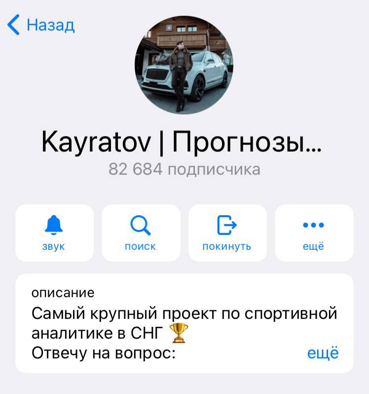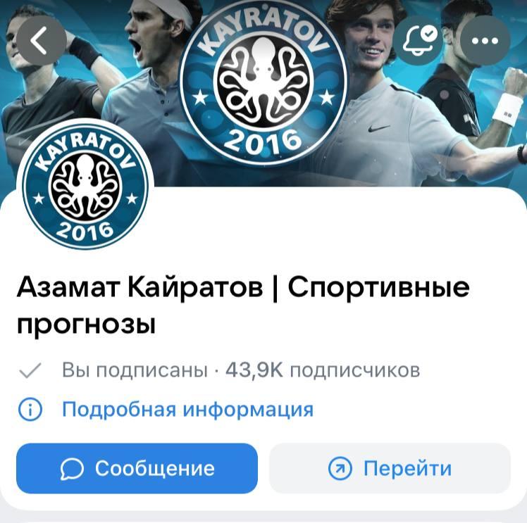 Азамат Кайратов, создатель «Kayratov», поддерживает контакт с аудиторией через Telegram и группу во ВКонтакте. Он предоставляет бесплатные прогнозы, не предлагая услуг за фиксированную плату, и делает акцент на анализе физической формы спортсменов. Мотивирующие посты в Telegram создают впечатление серьезного проекта, но репутация аналитика оставляет желать лучшего.