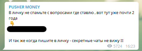 После краткого изучения канала Telegram Pusher Money было выяснено, что проект попал в черный список из-за предложений по продаже фиктивных договорных матчей. Кроме того, следует обращать внимание на низкий процент удачных бесплатных ставок, так как игровой банк может быть потерян даже за короткий период.