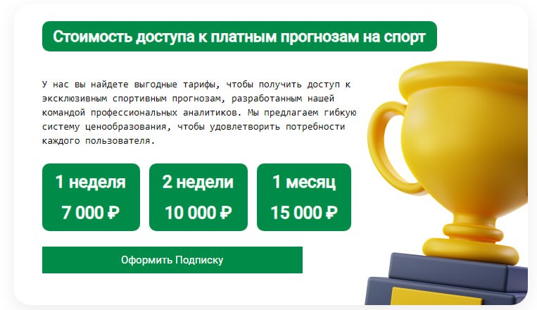 Проект заявляет о высокой проходимости своих прогнозов и предоставляет статистику прошлых результатов. Это дает клиентам возможность анализировать эффективность ставок и принимать решения на основе реальных данных. Прозрачность отчетности помогает повысить доверие к капперу.