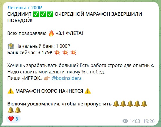 На канале ТГ Лесенка с 200Р Вячеслав Павлов регулярно организует бесплатные марафоны, призванные значительно увеличить стартовый капитал. Также доступны платные подписки, цена которых составляет 2,5 тыс. рублей. Дополнительно существует возможность индивидуального сотрудничества с каппером для повышения дохода.