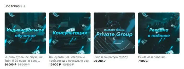 Валерий Уланов, помимо предоставления обучающих программ и консультаций, также предлагает возможность размещения рекламы на своей странице в ВКонтакте, цена которой составляет 3 000 рублей за месяц.