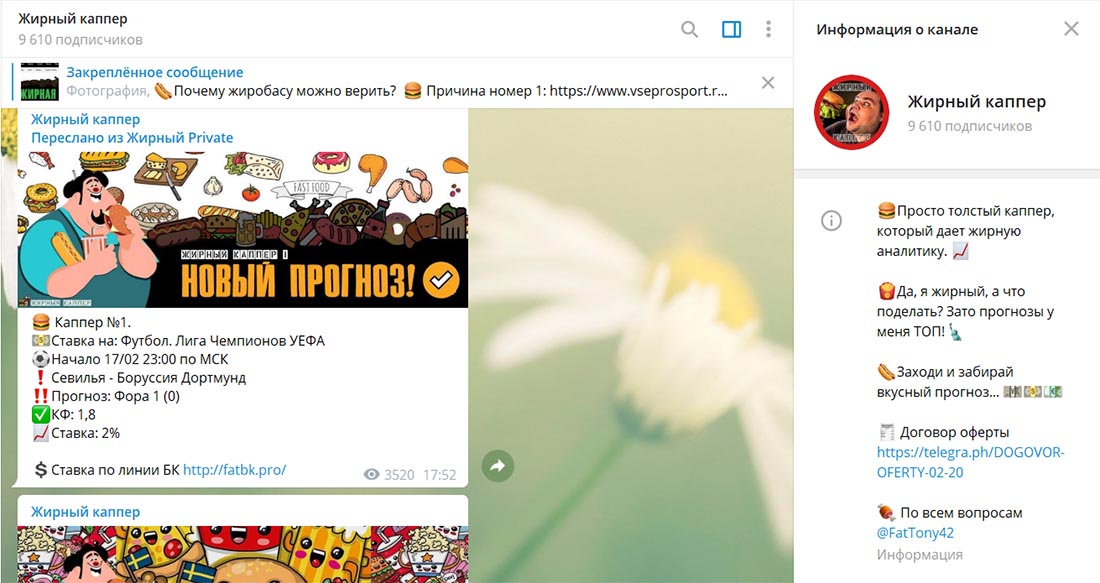 В августе 2019 года в нашу редакцию обратился молодой человек с никнеймом Жирный Тони (в дальнейшем его канал в Телеграмме получил название Жирный Каппер), который стремился приобрести рекламу или пройти процедуру верификации. На протяжении месяца мы пытались донести до него, что он не имеет возможности попасть в БС и размещаться у нас, поскольку не имеет подтверждения от других верификаторов и верифицированной статистики.